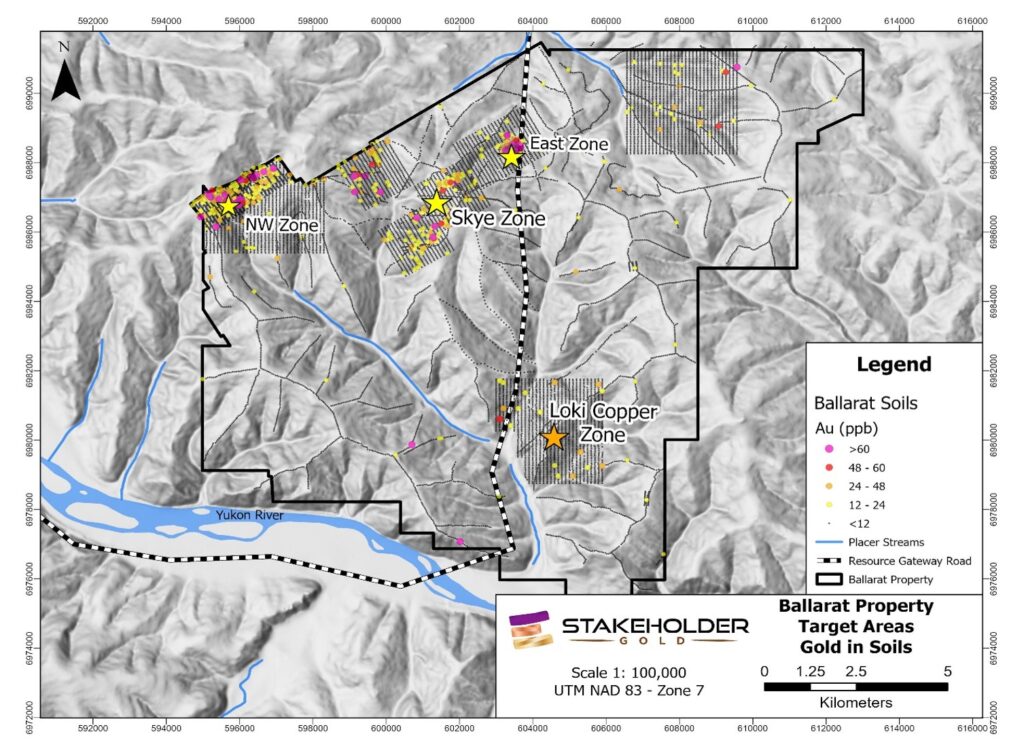 “Our objective in 2025 is to be able to announce results confirming two new discoveries, one for each of the Skye Gold Zone and the Loki Copper Zone, on the Ballarat Gold-Copper Project in the heart of the White Gold District of the Yukon Territory. We have worked progressively towards this objective over several exploration seasons. This year is expected to be a pivotal year for Stakeholder and for our understanding of the mineralogical potential of the gold and copper trends, respectively, that we have identified and outlined on Ballarat,” stated Christopher Berlet, CEO and Director of Stakeholder.